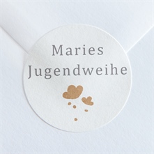 Für die Jugendweihe Ihres Kindes präsentieren wir neben wunderschönen Einladungskarten zur Jugendweihe viele weitere hochwertige Papeterie-Artikel, die diesen besonderen Anlass perfekt unterstreichen. Einer dieser Artikel sind unsere selbstklebenden Sticker. Durchstöbern Sie unseren Katalog und finden Sie einen Aufkleber, der optimal zu Ihrer Einladungskarte passt. Jeder Aufkleber kann mithilfe unseres Online-Gestaltungstools individuell nach Ihren Wünschen bearbeitet werden. Hier erfahren Sie, wie Sie Ihren Aufkleber personalisieren können, und warum es sich lohnt, unsere exklusiven Papeterie-Produkte für die Jugendweihe Ihres Kindes zu wählen.Mehr lesen
