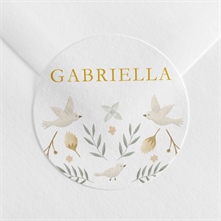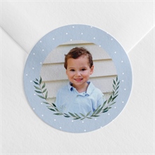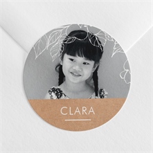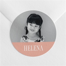 Elegante Sticker, personalisiert mit einem schönen Foto Ihres Kindes, seinem Namen und dem Datum der Kommunion, können Ihren Papeterie-Produkten eine persönliche und originelle Note verleihen. Zögern Sie nicht, einen Sticker auf Ihre Kirchenhefte, Ihre Menükarten zur Kommunion, Ihre Tischkarten oder Ihre Geschenkboxen zu kleben.
