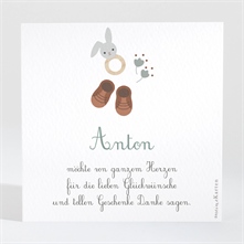 Gerade haben Sie einen neuen Familienzuwachs bekommen. Ihre Freunde und Verwandten sind von dem kleinen Wesen hoch entzückt und haben keine Kosten und Mühen gespart, Sie in dieser ersten, doch ein bisschen komplizierten Zeit zu unterstützen. Sie haben allerlei Geschenke und Glückwunschkarten, sowie morale Unterstützung erhalten und wissen gar nicht richtig mit dieser Zuneigung umzugehen. Vergessen Sie nicht, allen Anwesenden für diesen wichtigen Moment in Ihrem Leben mit schönen Dankeskarten zur Geburt zu danken. Wie wäre es hierfür mit Dankeskarten in Blau. Variieren Sie das Vergnügen, indem Sie verschiedene Blautöne verwenden, die hervorragend zu Ihrer neuen kleinen Familie und vor allem dem Charakter Ihres Kindes passen.
