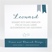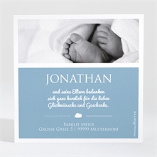 Gerade haben Sie einen neuen Familienzuwachs bekommen. Ihre Freunde und Verwandten sind von dem kleinen Wesen hoch entzückt und haben keine Kosten und Mühen gespart, Sie in dieser ersten, doch ein bisschen komplizierten Zeit zu unterstützen. Sie haben allerlei Geschenke und Glückwunschkarten, sowie morale Unterstützung erhalten und wissen gar nicht richtig mit dieser Zuneigung umzugehen. Vergessen Sie nicht, allen Anwesenden für diesen wichtigen Moment in Ihrem Leben mit schönen Dankeskarten zur Geburt zu danken. Wie wäre es hierfür mit Dankeskarten in Blau. Variieren Sie das Vergnügen, indem Sie verschiedene Blautöne verwenden, die hervorragend zu Ihrer neuen kleinen Familie und vor allem dem Charakter Ihres Kindes passen.