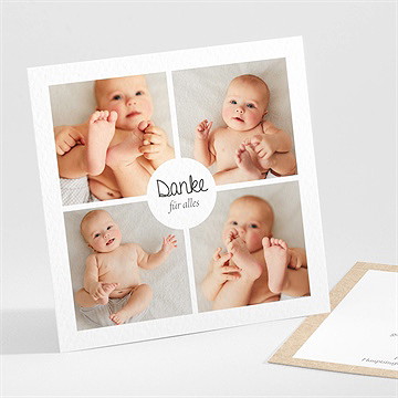 Eine klassische Dankeskarte, die auf die Geburtskarte abgestimmt ist.