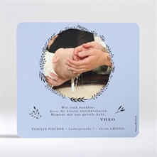 • Dankeskarten zur Taufe mit Fotos: Wie wäre es, wenn Sie sich bei Ihren Gästen mit ein oder mehreren wunderschönen Fotos Ihres Täuflings bedanken würden? Die Grafikdesigner von MeineKarten haben sich Produkte ausgedacht, die das Porträt Ihres Kindes besonders gut zur Geltung bringen. Achten Sie jedoch darauf, dass Sie Fotos in guter Qualität wählen, um ein besonders schönes Ergebnis zu erzielen.