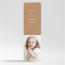 Dankeskarten im Lesezeichenformat sind sehr originell und praktisch. Sein längliches Hochkant-Format wird von seinen Empfängern gerne als vertikales Lesezeichen verwendet und findet so seinen Platz, auch noch lange nach der Taufe, in den Büchern Ihrer Familie.