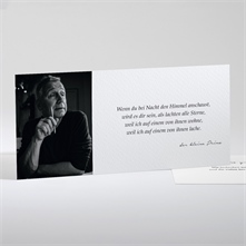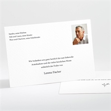 In Zeiten der Trauer ist es wichtig, sich von den Menschen, die einem nahestehen, umgeben und unterstützt zu fühlen. Gerade in dieser schwierigen Zeit tut es gut, Aufmerksamkeit, Liebe, Blumen und unterstützende Gesten zu bekommen und schöne Momente gemeinsam mit seiner Familie und seinen engsten Freunden zu verbringen. Bedanken Sie sich bei all Ihren Liebsten für ihren Beistand und ihre tröstenden Worte mit einer schönen Dankeskarte mit Foto. Gerne können Sie auch ein schönes Foto des Verstorbenen hinzufügen und so ein langanhaltendes Andenken an den geliebten Menschen verschicken. Wählen Sie dazu auf unserer Homepage ein Karten-Modell aus, das Ihnen und dem Verstorbenen entspricht und gestalten Sie es ganz einfach online mit unserem intuitiven Gestaltungstool. Unsere Grafiker stehen Ihnen auch gerne bei der Bearbeitung zur Seite. Lesen Sie hier, wie man eine gelungene Dankeskarte erstellt und einen schönen Dankestext schreibt.Mehr lesen