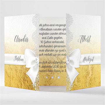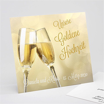 Jeder Hochzeitstag ist einzigartig! Jedes Jahr kann ein anderes Hochzeitsjubiläum gefeiert werden. Wenn Sie diesen Tag im Kreis Ihrer Freunde verbringen möchten, dann ist es schön, Ihnen einen persönlichen Einladungstext zu adressieren. Sagen Sie Ihren Lieben zu diesem Anlass, wie sehr Sie Ihr Glück mit ihnen teilen möchten. Wichtig sind selbstverständlich auch alle organisatorischen Angaben über die Feier Ihrer Goldhochzeit: Uhrzeit, Datum, Ort. Damit Sie besser planen können, sollten Sie auch eine Deadline für die Rückantwort auf der Karte notieren. Vergessen Sie dabei auch Ihre Kontaktdaten nicht. Je persönlicher der Text wird, desto mehr werden Ihre zukünftigen Gäste von Ihrer Einladung gerührt sein.