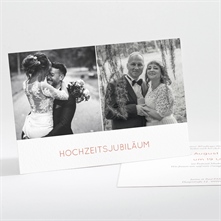 Wow, Sie sind inzwischen seit einigen Jahren verheiratet, seien es 30, 40, 50 oder 60 Jahre. Wir möchten Ihnen herzlich zu Ihrer langwährenden Liebe gratulieren. Sie möchten diese Hochzeitsjubiläen unbedingt im Kreise Ihrer Familie und Ihren Freunden feiern? Dann wählen Sie eine unserer schönen Einladungskarten zum Hochzeitsjubiläum aus und kündigen so frühzeitig das Datum der bevorstehenden Feier an. Ein Hochzeitstag ist ein festliches Ereignis; ob Sie Ihr Eheversprechen erneuern oder einfach nur einen schönen Hochzeitstag organisieren, wir bieten Ihnen eine schöne Kollektion mit diversen Einladungskarten an, um all Ihre Freunde und Verwandte einzuladen. Unser Kreativteam hat speziell für Sie klassische und originelle Einladungskarten sowie Karten im Vintage-Stil erstellt.Mehr lesen