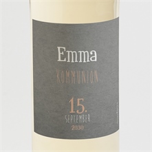 Bei der Kommunion Ihres Kindes möchten Sie sicherlich, dass alles perfekt ist. Überraschen Sie Ihre geladenen Gäste mit selbstgestalteten Flaschenetiketten. In dieser Kollektion finden Sie all unsere Flaschenetiketten, passen zu Ihrer restlichen Papeterie zur Kommunion. Damit auch alle Papeterie-Elemente der Tischdekoration zusammenpassen, erstellen unsere Grafiker zu jeder Einladungskarte zur Kommunion ein passendes Kirchenheft, eine Menükarte, eine Tischkarte, eine Geschenkbox, einen Aufkleber, einen Geschenkanhänger… und eben auch ein passendes Flaschenetikett. Schmökern Sie durch unseren schönen Katalog an modernen Modellen und beginnen Sie noch heute mit der Gestaltung eines Flaschenetiketts zur Kommunion.Mehr lesen