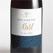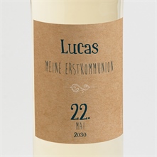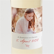 Bei der Kommunion Ihres Kindes möchten Sie sicherlich, dass alles perfekt ist. Überraschen Sie Ihre geladenen Gäste mit selbstgestalteten Flaschenetiketten. In dieser Kollektion finden Sie all unsere Flaschenetiketten, passen zu Ihrer restlichen Papeterie zur Kommunion. Damit auch alle Papeterie-Elemente der Tischdekoration zusammenpassen, erstellen unsere Grafiker zu jeder Einladungskarte zur Kommunion ein passendes Kirchenheft, eine Menükarte, eine Tischkarte, eine Geschenkbox, einen Aufkleber, einen Geschenkanhänger… und eben auch ein passendes Flaschenetikett. Schmökern Sie durch unseren schönen Katalog an modernen Modellen und beginnen Sie noch heute mit der Gestaltung eines Flaschenetiketts zur Kommunion.Mehr lesen