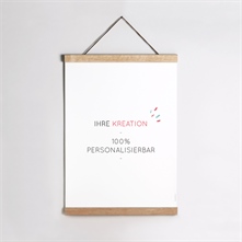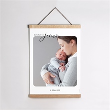 Um Ihr personalisiertes Babyposter aufzuhängen, aber auch um es auf originelle Weise zur Geltung zu bringen, bietet Ihnen MeineKarten eine originelle Holzklammer an. Diese ist magnetisch und daher sehr einfach zu verwenden. Traditionelle Bilder-Rahmen werden mit diesen originellen Holz-Rahmen hinfällig. Legen Sie einfach den oberen und unteren Teil Ihres Posters in die dafür vorgesehene Magnethalterung und finden Sie dann den perfekten Platz an der Wand im Kinderzimmer Ihrer Mädchen oder Jungen!