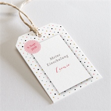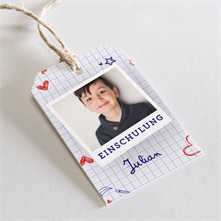 Die Einschulung eines Kindes ist ein schönes Ereignis, dass man gerne im Kreis seiner Familie feiert. Inzwischen steht der Tagesablauf fest, die Einladungskarten sind verschickt und die meisten Ihrer Familienmitglieder haben Ihnen Ihr Kommen bereits bestätigt? Dann sollten Sie jetzt über ein kleines Gastgeschenk nachdenken, das Sie allen Gästen überreichen können. Dieses Gastgeschenk sollte Ihnen einerseits eine kleine Freude bereiten, Ihre Dankbarkeit ausdrücken und noch lange an das schöne Fest der Einschulung Ihres Kindes zurückerinnern. Um diesen drei Punkten gerecht zu werden, können wir Ihnen empfehlen Ihre Gastgeschenke mit einem individualisierbaren Geschenkanhänger zu personalisieren. Diese Kollektion unserer Geschenkanhänger zur Einschulung eignet sich hierzu besonders gut. Entdecken Sie hier die Kreationen unserer GrafikerInnen, passend zu Ihren Einladungskarten und Dankeskarten zur Einschulung.Mehr lesen