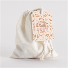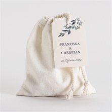 Im Leben eines Paares gibt es viele wichtige Ereignisse: die Hochzeit ist eines der schönsten Feste, das man gerne mit der ganzen Familie feiert. Sie können es kaum erwarten, vor der ganzen Welt JA zu sagen? Der Tagesplan steht, die Saal-Dekoration ist bereits ausgesucht und all Ihre engsten Freunde und Verwandte sind zu Ihrer Hochzeit eingeladen. Dann ist es jetzt an der Zeit die Tischdekoration fertigzustellen und kleine Geschenke für Ihre Gäste vorzubereiten. Traditionell verteilt man zu einer Hochzeit 5 Zuckermandeln an die anwesenden Gäste: Diese stehen für Liebe, Gesundheit, Glück, Wohlstand und Fruchtbarkeit. Wir bieten Ihnen in dieser Kollektion kleine Geschenksäckchen aus Baumwolle an, die Sie mit genau diesen Zuckermandeln befüllen können. Jeder Geschenkbeutel ist mit einem personalisierbaren Anhänger versehen, den Sie online über unser Gestaltungstool nach Ihren Vorstellungen bearbeiten können.Mehr lesen