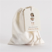Sie planen gerade die Erstkommunion Ihres Kindes? Wie wäre es, wenn Sie Ihre Gäste mit süßen Geschenken wie Zuckermandeln oder Schokoladen-Dragées in einem eleganten Geschenkbeutel verwöhnen? Diese kleinen Süßigkeiten, die sowohl zart schmelzend auf der Zunge vergehen, als auch lecker knuspern, kommen bei großen Ereignissen wie einer Taufe, einer Kommunion oder einer Hochzeit immer gut an. Sie sind nicht nur eine schöne Art, Ihre Dankbarkeit gegenüber all denen zu zeigen, die an der Erstkommunionfeier teilgenommen haben, sondern machen auch den Naschkatzen eine Freude. Eine Kommuniontasche gefüllt mit leckeren Zuckermandeln ist DAS Geschenk schlechthin, um die Herzen Ihrer Gäste zum Schmelzen zu bringen und ihnen ein kleines Andenken an die Kommunion Ihres Jungen oder Mädchen zu hinterlassen. Wir haben es uns zur Aufgabe gemacht, Sie bei allen großen Familienfesten zu begleiten. Unsere GrafikerInnen haben daher diese schöne Kollektion an Geschenkbeuteln mit personalisierbaren Geschenkanhängern entworfen, die perfekt zu Ihren Einladungskarten zur Kommunion oder sonstigen Elementen der Tischdekoration passen werden. Unsere Geschenkbeutel sind mit kleinen Geschenkanhängern in den Maßen 4 cm x 6 cm versehen, die in Bezug auf Muster, Farben und Typografie zu 100 % personalisiert werden können.Mehr lesen