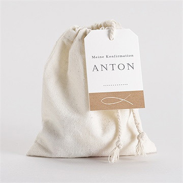 Paten schenken klassisch etwas großzügiger – z. B. zwischen 75 und 200 Euro – je nach Budget und persönlicher Beziehung. Der Geschenkbeutel gibt der Geste eine festliche Verpackung. Auf dem Geschenkanhänger können Sie eine persönliche Botschaft für den Konfirmanden hinterlassen.