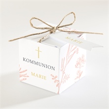 Wir bei MeineKarten haben uns nicht nur auf Papeterie-Produkte zur Kommunion spezialisiert, sondern bieten Ihnen auch weitere Kategorien an: Geburt, Taufe, Hochzeit, Konfirmation, Trauer … Wir bieten Ihnen diese wunderschöne Geschenkbox, aber auch Einladungen, Dankeskarten, Kirchenhefte, Menükarten und viele andere Elemente an, mit denen Sie Ihre Tischdekoration verschönern können.