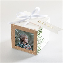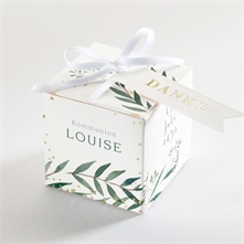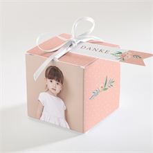 Wie bereits mehrfach erwähnt, ist eine Zuckermandelschachtel zur Kommunion, zur Taufe oder zur Hochzeit nicht nur ein Geschenk an Ihre Gäste. Sie ist vielmehr ein Element Ihrer Tisch- und Raumdekoration. Daher sollte die Dose zum Thema des Tages passen und Ihrer Dekoration einen zusätzlichen originellen Touch verleihen. MeineKarten.com bietet Ihnen mehrere Veredelungsmöglichkeiten an, um Ihre Geschenkbox zu verschönern.