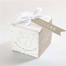 Eine Kommunion ist vor allem ein wichtiges religiöses Fest der Katholiken. Die Protestanten hingegen feiern Konfirmation. Ihnen ist es wichtig, dass dieser religiöse Charakter auch auf den Geschenkboxen sichtbar ist? Dann wählen Sie eines unserer vielen Modelle mit Friedenstauben oder Kreuz- oder Ictus-Symbolen aus.