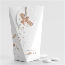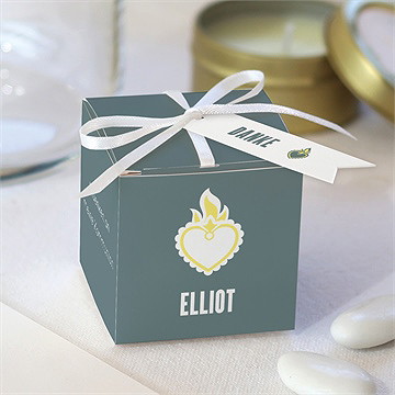 Wie bereits mehrfach erwähnt, ist eine Zuckermandelschachtel zur Kommunion, zur Taufe oder zur Hochzeit nicht nur ein Geschenk an Ihre Gäste. Sie ist vielmehr ein Element Ihrer Tisch- und Raumdekoration. Daher sollte die Dose zum Thema des Tages passen und Ihrer Dekoration einen zusätzlichen originellen Touch verleihen. MeineKarten.com bietet Ihnen mehrere Veredelungsmöglichkeiten an, um Ihre Geschenkbox zu verschönern.