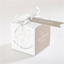 Eine Kommunion ist vor allem ein wichtiges religiöses Fest der Katholiken. Die Protestanten hingegen feiern Konfirmation. Ihnen ist es wichtig, dass dieser religiöse Charakter auch auf den Geschenkboxen sichtbar ist? Dann wählen Sie eines unserer vielen Modelle mit Friedenstauben oder Kreuz- oder Ictus-Symbolen aus.