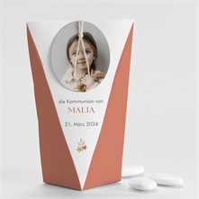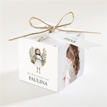 Sie sind auf der Suche nach einem Behälter für leckere Zuckermandeln zur Kommunion, der zum Thema Ihres großen Tages passt und mit Ihrer Tisch-Deko harmoniert? Dann werden Sie hier bestimmt fündig. Wir bieten Ihnen eine große Auswahl an Geschenkboxen mit Illustrationen, mit modernen Grafiken, zarten Aquarell-Malereien, niedlichen Zeichnungen und floralen Designs.