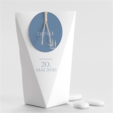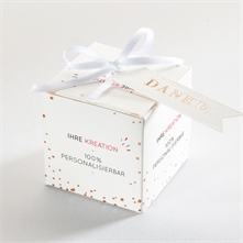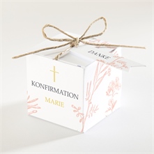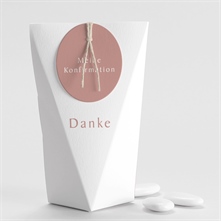Kleine Geschenkboxen, gefüllt mit leckeren Zuckermandeln sind ein wunderbares Gastgeschenk für alle, bei der Konfirmation anwesenden Freunde und Verwandte Ihres Kindes. Überraschen Sie Ihre Liebsten mit einem eleganten Design, das zu Ihren Einladungskarten zur Konfirmation passt. In unserer Rubrik „Zuckermandeln zur Konfirmation“ bieten wir weiße Zuckermandeln und bunte Schokoladen-Dragées an. Um Ihnen eine große Auswahl an originellen Geschenk-Boxen zu bieten, haben unsere Grafiker viele verschiedene Modelle in unterschiedlichen Designs und Formaten für Sie erstellt. Schmökern Sie durch unseren großen Katalog und wählen Sie ein Modell aus, das am besten zur Deko Ihrer Konfirmationsfeier passen wird. Über unser Gestaltungstool können Sie anschließend alle Oberflächen gestalten.Mehr lesen
