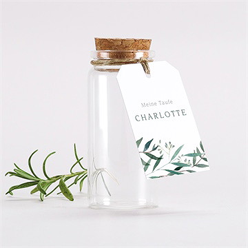 Um Ihre Gastgeschenke zu personalisieren, haben Sie zwei Möglichkeiten: entweder einen selbstklebenden Sticker oder einen kleinen Geschenkanhänger. Wie bei unseren personalisierten Kerzen zur Hochzeit und zur Taufe kann der Aufkleber oder hier auch der Geschenkanhänger der Glas-Flaschen in unserem Online-Designstudio individuell gestaltet werden. Wählen Sie ein passendes Design in unserem großen Katalog aus und nutzen Sie direkt online unser Gestaltungstool, um es mit Ihren persönlichen Angaben zu personalisieren. Wir empfehlen Ihnen, das Design im gleichen Design wie Ihre restlichen Papeterie-Produkte zu wählen.
