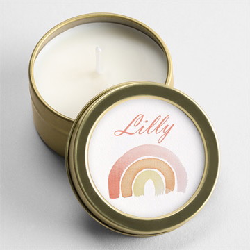 Ihr Baby ist endlich da. Um sich für die Aufmerksamkeiten und die vielen Geschenke zu bedanken, die Sie erhalten haben, können Sie Ihren Freunden und Verwandten diese kleine Kerzen verschenken. Diese Kerzen passen perfekt zu Ihren Geburtskarten und lassen sich mithilfe unseres Online-Designstudios ganz einfach personalisieren. Sie können die Hintergrundfarbe nach Ihren Wünschen auswählen und den Vornamen Ihres Kindes hinzufügen. In der Metalldose (Gold oder Silber) werden Ihre Lieben eine Kerze aus 100% natürlichem Sojawachs und ohne Parfüm entdecken. Sie müssen nur noch den Sticker auf jedem Deckel anbringen und dieses schöne Geschenk überreichen.