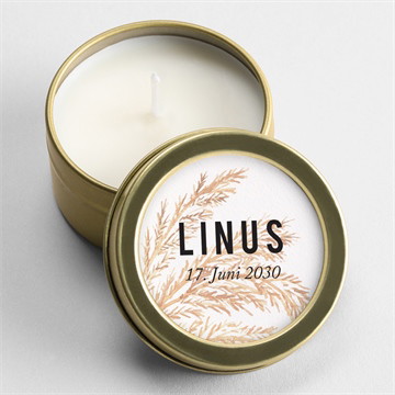 Verschenken Sie diese Kerzen an Ihre Lieben, um die Ankunft Ihres Kindes zu feiern und ihnen für all die Aufmerksamkeiten zu danken, die sie Ihnen seit seiner Geburt entgegengebracht haben. In elegante Metallschachteln gegossen(Farbe nach Wahl in den Optionen Ihrer Bestellung), sind diese aus natürlichem Sojawachs hergestellten Kerzen ein hübsches Geschenk. Unser Layout-Studio ermöglicht Ihnen die individuelle Gestaltung des Stickers, den Sie eigenhändig auf den Deckel der Kerzen kleben dürfen.
