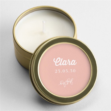Schenken Sie Ihren Lieben eine Kerze zur Geburt Ihres Babys. Unsere kleinen Dosenkerzen sind aus Sojawachs hergestellt und in eine schöne goldene Metallschachtel gegossen. Sie können den Sticker auf dem Deckel mithilfe unseres Layout-Tools individuell gestalten.