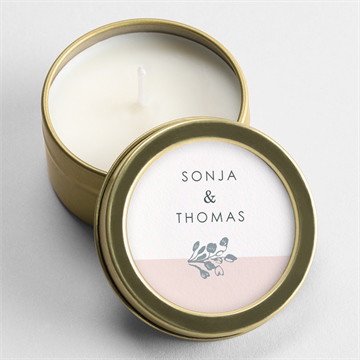 Finden Sie das schöne Blattwerk Ihrer Hochzeitskollektion auf dem Sticker dieses Kerzensets aus natürlichem Sojawachs wieder. Wir stellen Ihnen unser Designstudio zur Verfügung, damit Sie dieses Modell ganz einfach selbst gestalten und die Hintergrundfarbe entsprechend Ihrer Hochzeitsdekoration auswählen können. Diese Gastgeschenke werden Ihre Freunde und Familie begeistern, da sie eine schöne Erinnerung an diesen besonderen Tag behalten können.