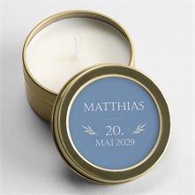 Sie sind gerade dabei, die Firmung Ihrer Tochter oder Ihres Sohnes zu organisieren? Haben Sie auch schon an die kleinen Gastgeschenke gedacht, die Sie auf Ihren Empfangstischen verteilen können. Es gibt unzählige Geschenk-Ideen, um Ihren Gästen für Ihre Anwesenheit an Ihren religiösen Feiern zu danken: Marienmedaillen, Lesezeichen, Geschenkboxen, gefüllt mit leckeren Zuckermandeln oder kleine Kerzen. Unsere Dosenkerzen bestehen aus 100% natürlichem Sojawachs und sind parfümfrei. Durch den personalisierbaren Sticker auf dem Deckel der Metalldose können Sie die Kerzen an Ihre Tischdekoration anpassen und mit dem Namen Ihres Mädchen oder Jungen und dem Datum der Firmung versehen. Durchstöbern Sie unsere vielfältige Kollektion und bearbeiten Sie den kleinen Aufkleber direkt online über unser Gestaltungstool. Die Bestellung erfolgt ausschließlich über unseren Online-Shop Meinekarten.de.Mehr lesen