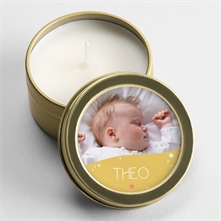 Die Geburt eines Kindes ist ein Wendepunkt im Leben einer jeder Familie. Nachdem Sie die Geburtskarten für die Ankunft des Kindes vorbereitet hatten, fanden Sie jedoch, dass etwas fehlte, um das Ereignis für alle einzigartig zu machen. Sie haben daher beschlossen, all denjenigen, die Ihrem Kind ihre Zuneigung gezeigt haben, ein Geschenk zu machen. Ihre Wahl fiel auf eine personalisierte Geburtskerze als Hommage an die Geburt Ihres Kindes. Entdecken Sie hier unseren großen Katalog an personalisierbaren kleinen Kerzen zur Geburt Ihres Kindes. Falls Sie die Kerzen nicht mit den Geburtskarten verschicken wollen, können Sie sie auch als Dankeschön mit Ihren Dankeskarten verschicken und so Ihren Liebsten für die vielen Geschenke und Glückwünsche Danke sagen. Unsere personalisierten Kerzen können auch als Geburtstagskerze oder Lebenskerze dienen.Mehr lesen
