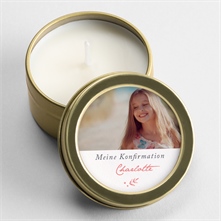 Sie sind auf der Suche nach dem perfekten Geschenk, um sich bei Ihren Gästen für Ihre Anwesenheit bei der Konfirmation Ihres Kindes zu bedanken? Wie wäre es mit einer kleinen Konfirmationskerze in Form einer Dosen-Kerze aus Sojawachs? Noch dazu haben Sie bei unseren Modellen die Möglichkeit einen kleinen Sticker auf dem Deckel der Dose individuell zu gestalten. Dazu steht Ihnen auf jeder Produktseite unser Gestaltungstool zur Verfügung. Unsere kleinen Kerzen in Metalldosen sind originelle Gastgeschenke, die Ihren Freunden und Verwandten zeigen, dass Sie Ihre Anwesenheit an diesem wichtigen Tag sehr zu schätzen wissen. Wir bieten Ihnen passend zu jeder religiösen Veranstaltung wie einer Taufe, einer Erstkommunion, einer Konfirmation oder einer Hochzeit unterschiedliche Designs an.Mehr lesen
