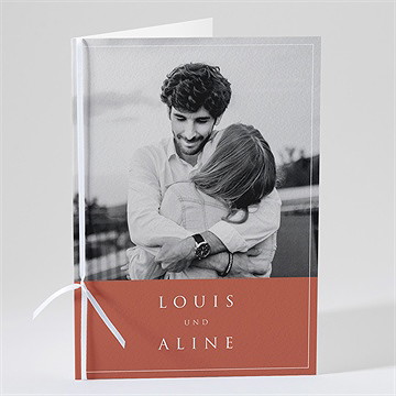 Wie all unsere Papeterie-Produkte zur Hochzeit, können Sie auch Ihr Kirchenheft frei nach Ihrem Thema und Ihren Vorstellungen gestalten. Wie wäre es mit Ihrem schönsten Foto auch auf dem Kirchenheft? Sie können unsere Vorlagen mit Fotomotiven nach Ihren Lieblingsbildern und Wünschen personalisieren und mit unserem Online-Designtool ganz einfach Ihrer weiteren Hochzeitspapeterie anpassen.