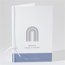 Die Hochzeit rückt immer näher und Sie wissen nicht, wie Sie sie noch einzigartiger und origineller gestalten können. Der Gedanke an eine herkömmliche Zeremonie mit einfacher Dekoration erfreut Sie nicht besonders. Sie möchten lieber eine fröhliche Hochzeitszeremonie mit einem kleinen Hauch von Verrücktheit und Originalität. Zerbrechen Sie sich nicht länger den Kopf und wählen Sie eines unserer originellen Kirchenhefte. Wir von MeineKarten bieten Ihnen zahlreiche Designs, die Ihre Zeremonie unvergesslich machen werden. Wählen Sie ganz nach Ihrem Hochzeitsthema ein originelles und doch elegantes Kirchenheft zur Hochzeit, das ganz und gar Ihren Wünschen entspricht. Wenn Sie darauf achten, dass die Dekorationselemente sowie die Hochzeitspapeterie gut zusammenpassen, werden Ihre Gäste ganz bestimmt von Ihren Karten begeistert sein und sich noch lange an Ihre originelle Hochzeitsfeier erinnern.Mehr lesen