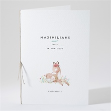 Entdecken Sie hier unsere Modelle für die Taufe Ihres Jungen: Starke Farben, klassische Designs, moderne und religiöse Motive, sowie klare Linien charakterisieren diese Kollektion. Bedrucken Sie beispielsweise die Außenseite mit den wichtigsten Informationen: dem vollständigen Namen Ihres Kindes, das Datum und den Namen der Kirche, sowie einige persönliche Dankesworte an den Pfarrer, der Patin und dem Paten. Auf der Innenseite ist Platz für ein schönes Foto Ihres Kindes, sowie den detaillierten Gottesdienstablauf. Wenn Sie möchten, können Sie auch zusätzlich noch wichtige Liedtexte oder Bibelstellen hinzufügen. Zusätzliche, von Ihnen ausgedruckte Einleger können mit einer Kordel oder Schnur Ihrer Wahl zusammengehalten werden.Mehr lesen