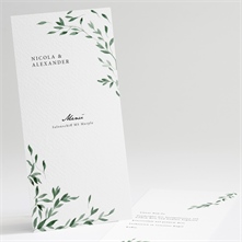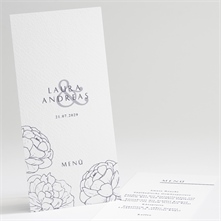 Um Ihnen die Wahl zu erleichtern, bieten wir unsere Menükarten zur Hochzeit als traditionelle Faltkarten aber auch als moderne doppelseitige Modelle im Hochformat an. Klappkarten stehen von selbst und eignen sich daher für eine Dekoration in der Tischmitte. Die länglichen Modelle wirken besonders schön auf Tellern oder in Verbindung mit Servietten und Besteck. Entdecken Sie auch unsere Neuheit: runde Menükarten, die Sie auf den Teller jeder Ihrer Gäste legen können, sind aktuell sehr gefragt.