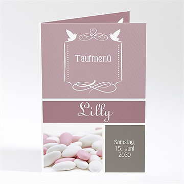 Menükarten zur Taufe mit Violett