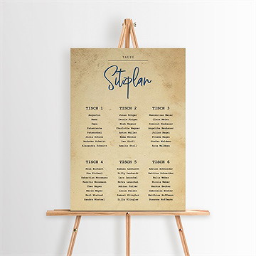 In der Regel ist die Feier der Taufe einem christlichen Thema gewidmet, das mit der religiösen Taufe und den dazugehörigen Ritualen in Verbindung steht. Wenn Sie alle Ihre Papeterie-Produkte, wie das Menü, die Taufeinladungen und die Tischkarten um ein bestimmtes Thema herum gestaltet haben, empfehlen wir Ihnen, dieses Thema auch im Sitzplan zu berücksichtigen und das gewählte Design auf diesen zu übertragen. Sie können jedoch auch ein anderes Thema wählen und sich für ein unabhängiges Design entscheiden, das trotz allem mit dem gewählten Farbkonzept übereinstimmt. In unserem Online-Shop finden Sie Sitzpläne mit trendigen Kraftpapier-Elementen, floralen Kompositionen, festlichen Girlanden und grafischen Motiven in den Farben Gold, Blau, Rosa, Beige, Grün oder Grau.