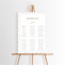 Die Vorbereitungen für die Taufe Ihres Kindes sind gut vorangeschritten. Nachdem Sie die Gästeliste erstellt, den Ort der Zeremonie und der Feier festgelegt und die Einladungen verschickt haben, steht noch ein wichtiger Schritt an: der Sitzplan für die Taufe. Damit der Ablauf der Taufe Ihres Kindes perfekt wird, ist es wichtig, wie bei einer Hochzeit oder einer Kommunion auch, die Sitzordnung Ihrer Gäste genau zu bestimmen, damit jeder die Feier und das Essen neben Personen genießen kann, mit denen er sich gerne austauscht. Sobald Ihre Sitzordnung feststeht, können Sie sich unserer Kollektion zuwenden und online Ihren ganz persönlichen Sitzplan erstellen. Wählen Sie ein Design aus, das Ihren Einladungskarten, den Papeterie-Produkten und Ihrer Deko entspricht. Vor allem sollte Ihr Sitzplan aber übersichtlich sein, damit Ihre Gäste schnell Ihre Plätze an den für Sie reservierten Tischen finden.Mehr lesen