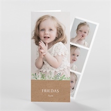 Haben Sie für die Einladungskarte zur Taufe Ihres Jungen Pastelltöne gewählt? Dann kombinieren Sie diese für die Innendekoration mit weißen Elementen. Wir empfehlen auch Accessoires oder Motive, wie Sternen, Blätterzweige und religiöse Illustrationen des Karten-Designs aufzugreifen und so eine liebevolle, zu Ihrem Jungen passende Dekoration zu schaffen. Außerdem sorgt eine Dekoration aus Fotos Ihrer Kinder (Mädchen und Junge) für eine ganz persönliche Note. Sie könnten zum Beispiel verschiedene Bilder aus wichtigen Momenten in seinem Leben präsentieren, um Verwandten und Freunden von nah und fern eine große Freude zu bereiten. Es besteht zudem die Möglichkeit, die passende Menükarte, Flaschenetiketten, Geschenkanhänger und kleine Aufkleber im gleichen Design, zum Beispiel mit Sternen oder Blätterranken zu bestellen. Vergessen Sie auch die Tischkarten zur Taufe nicht, die Ihre Tischdekoration abrunden und Ihren Gästen ihren Platz für die Feierlichkeit weisen werden.