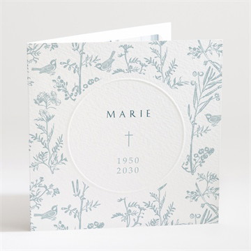 Um Ihnen bei der heiklen Aufgabe zu helfen, den Tod eines geliebten Menschen zu verkünden, bietet Ihnen unser Atelier diese elegante Trauerkarten in einem minimalistischen Stil und mit blauem Hintergrund an. Passen Sie den Text und die Hintergrundfarbe ganz einfach mit unserem Layoutstudio auf unserer Website an. (Ref. N251120)