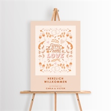 Begrüßen Sie Ihre Gäste angemessen und heißen Sie sie am Tag Ihrer Hochzeit mit einem personalisierten Willkommensschild willkommen. Wählen Sie dazu ein Willkommensschild zur Hochzeit aus und platzieren Sie es am Eingang des Empfangs Ihrer Hochzeit. Dank unseres Online-Gestaltungstools wird es Ihnen sehr leichtfallen, dieses Willkommensschild an die Papeterie-Produkte Ihrer Hochzeit, bestehend aus Hochzeitseinladungen, Kirchenheften, Geschenkboxen, Aufkleber und Menükarten anzupassen. Nachdem Sie bereits Ihre Einladungskarten verschickt haben und inzwischen wissen, wie viele Gäste an Ihrer Hochzeit anwesend sein werden, können Sie sich jetzt mit den dekorativen Papeterie-Produkten, wie den Hochzeitsschildern beschäftigen. Wählen Sie in diesem Katalog das passende Willkommensschild und gestalten Sie es online mit unserem Gestaltungstool, um es an Ihre Hochzeit anzupassen.Mehr lesen