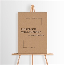 Begrüßen Sie Ihre Gäste angemessen und heißen Sie sie am Tag Ihrer Hochzeit mit einem personalisierten Willkommensschild willkommen. Wählen Sie dazu ein Willkommensschild zur Hochzeit aus und platzieren Sie es am Eingang des Empfangs Ihrer Hochzeit. Dank unseres Online-Gestaltungstools wird es Ihnen sehr leichtfallen, dieses Willkommensschild an die Papeterie-Produkte Ihrer Hochzeit, bestehend aus Hochzeitseinladungen, Kirchenheften, Geschenkboxen, Aufkleber und Menükarten anzupassen. Nachdem Sie bereits Ihre Einladungskarten verschickt haben und inzwischen wissen, wie viele Gäste an Ihrer Hochzeit anwesend sein werden, können Sie sich jetzt mit den dekorativen Papeterie-Produkten, wie den Hochzeitsschildern beschäftigen. Wählen Sie in diesem Katalog das passende Willkommensschild und gestalten Sie es online mit unserem Gestaltungstool, um es an Ihre Hochzeit anzupassen.Mehr lesen