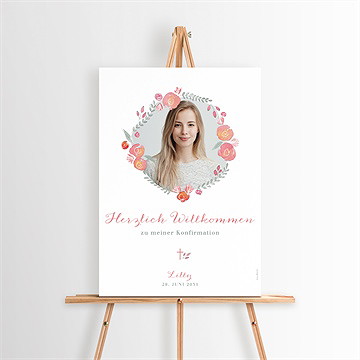 Ein Willkommensschild am Eingang Ihrer Konfirmationsfeier dient nicht nur als dekoratives Element, sondern vermittelt Ihren Gästen auch sofort das festliche Ambiente Ihrer Feier. Durch seine Platzierung am Eingang heißen Sie Ihre Gäste herzlich willkommen und schaffen eine einladende Atmosphäre. Zusammen mit anderen Deko-Artikeln, ebenfalls über unseren Online-Shop personalisiert, bildet das Willkommensschild einen unvergesslichen Rahmen für Ihre Feier.
