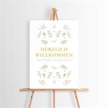 Die Vorbereitungen für die Taufe laufen auf Hochtouren und es ist jetzt an der Zeit, über Ihre Deko und Papeterie-Elemente nachzudenken, die zum Erfolg des Festes beitragen werden. Um Ihre Gäste angemessen willkommen zu heißen, empfehlen wir Ihnen unsere Willkommensschilder zur Taufe zu nutzen. Über unser Gestaltungstool können Sie unsere Willkommensschilder ganz individuell gestalten und sie somit zu einem bemerkenswerten Accessoire Ihrer Taufe, Hochzeit oder Kommunion zu machen. Durchstöbern Sie unsere große Kollektion und finden Sie noch heute das passende Willkommensschild für die Taufe Ihres Kindes, das sowohl zur Location als auch zu Ihren Taufeinladungen passt.Mehr lesen